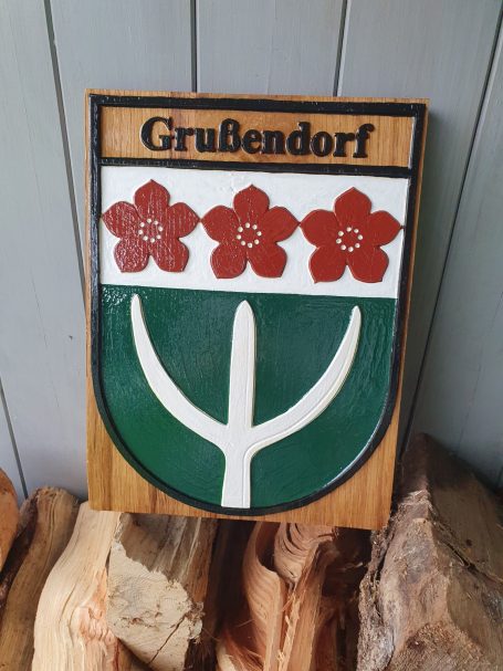 Und weil es so gut ankam, gleich nochmal. Im Dezember habe ich die Ehre bekommen für das Dorfgemeinschaftshaus das Wappen auf einer ähnlich großen Platte umzusetzen. Das bedeutet mir wirklich viel❤️!