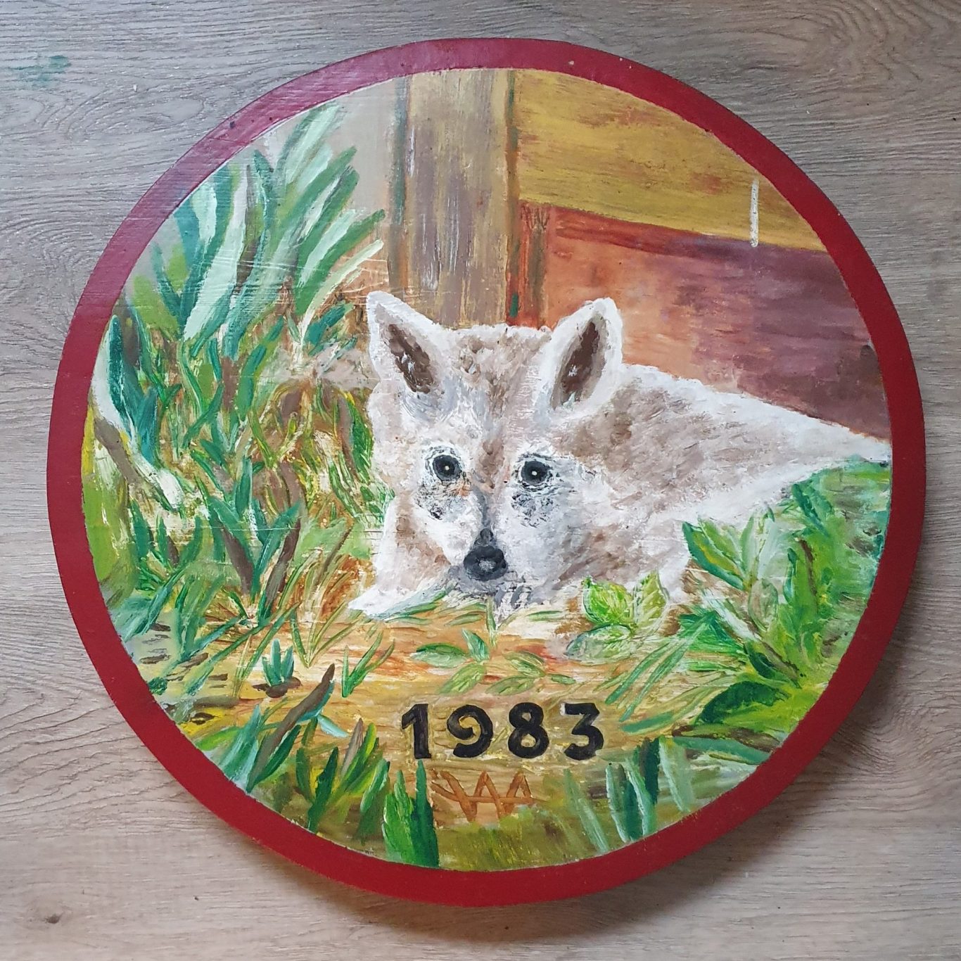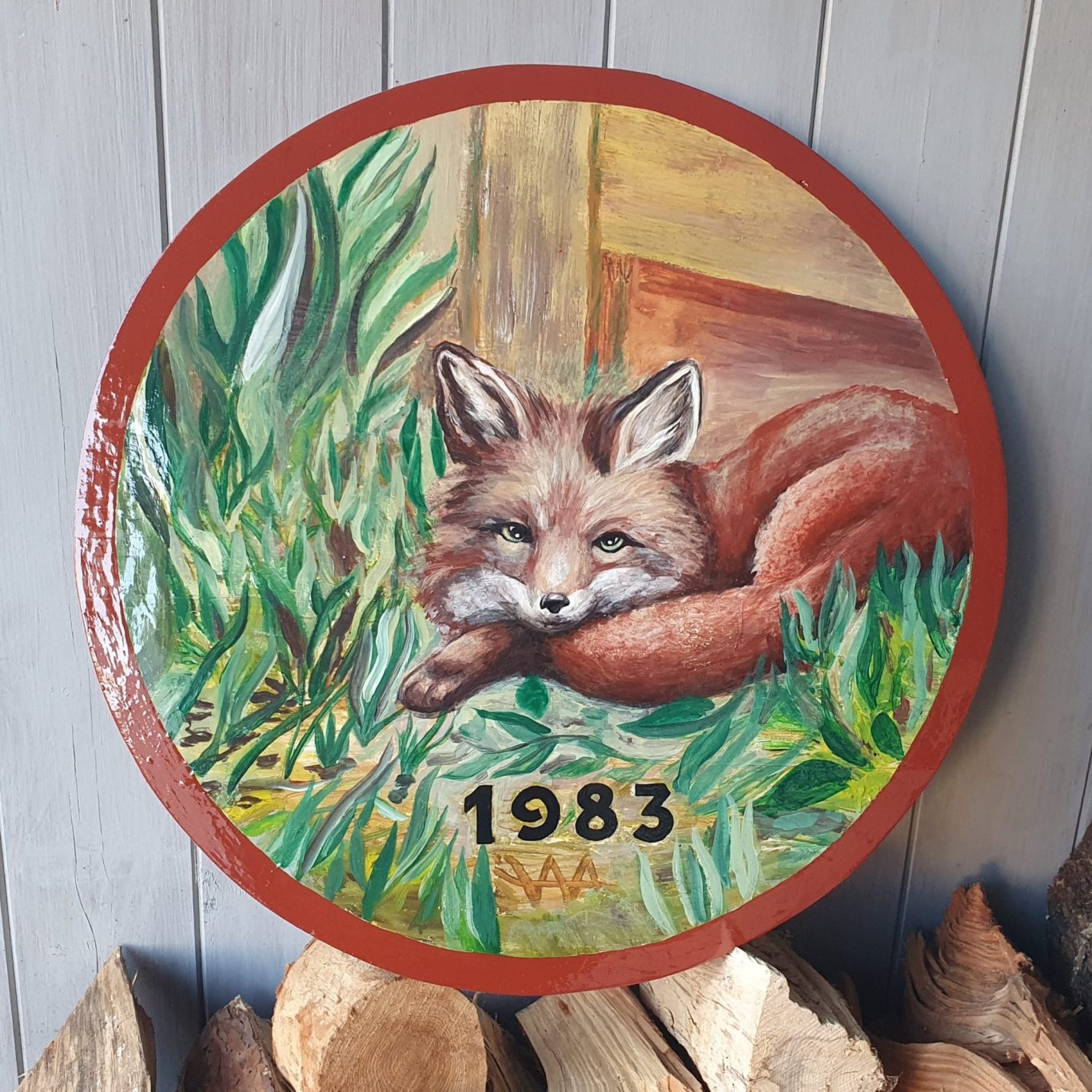 Alt: Diese Scheibe von 1983 hat jemand zwischendurch versucht zu restaurieren. Leider ist der Versuch nicht ganz geglückt. Schade ist außerdem, dass es kein Foto der originalen Scheibe gibt. Daher musste ich einen passenden Fuchs als Motiv ersetzen.