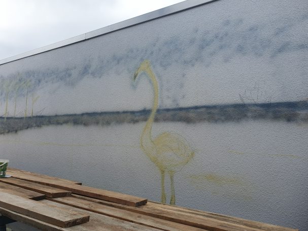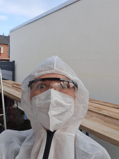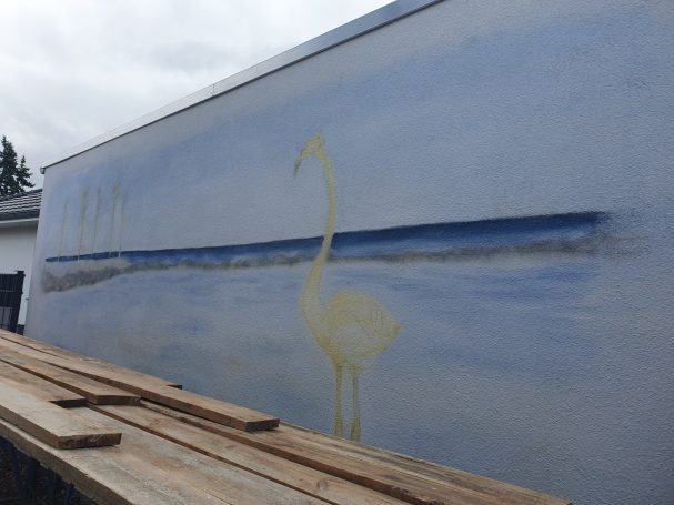 Eine große weiße Garagenwand mit Spraydose besprühen. Eine tolle Herausforderung, dachte ich. Eine schlimme Umsetzung, musste ich feststellen.