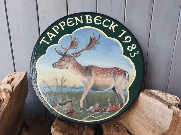 Aus alt mach neu: Diese Scheibe aus dem Jahr 1983 hat lange gut gehalten. Nun sollte sie dennoch zu neuem Leben erweckt werden. Mit einem Umweg zu einem Fabelhirsch, einer Mischung aus Damwild und Rothirsch, habe ich dann doch noch einen richtigen Damhirsch hinbekommen.