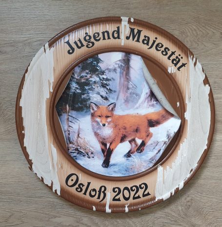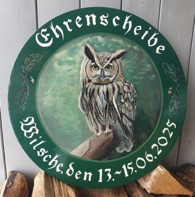 Last but not least - noch einmal eine Schützenscheibe als tolles Geschenk für jemanden, der zwar den Titel, aber keine Scheibe erhalten hat. (Die Ehrung mit einer Schützenscheibe haben die Majestäten in Wilsche erst später erhalten.)